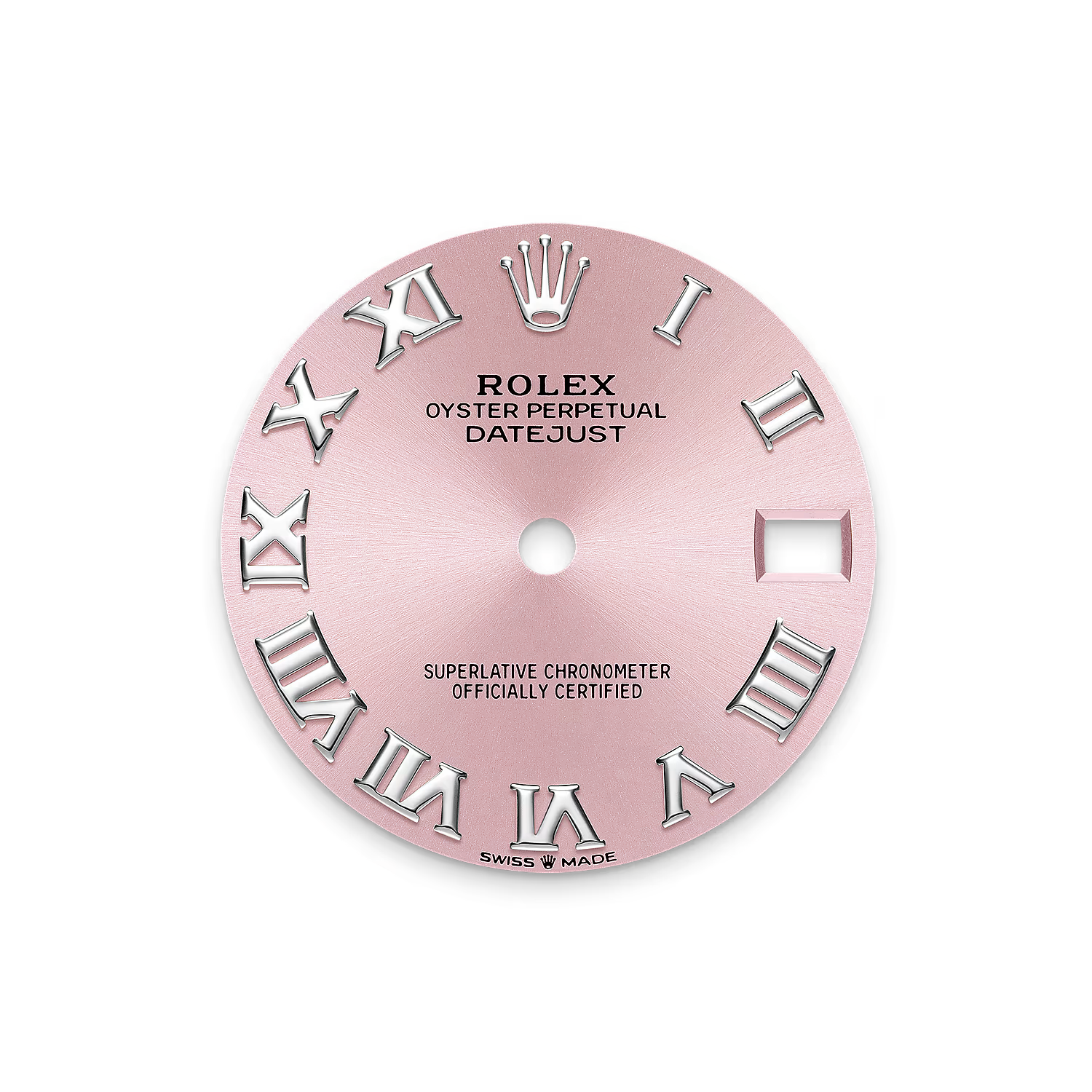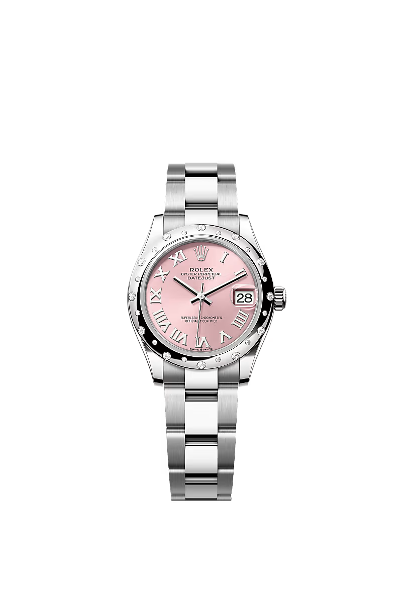 تتميز ساعة أويستر بربتشوال ديت جست ٣١ هذه المصنوعة من فولاذ أويستر ستيل والذهب الأبيض بمينا وردي وبسوار أويستر.