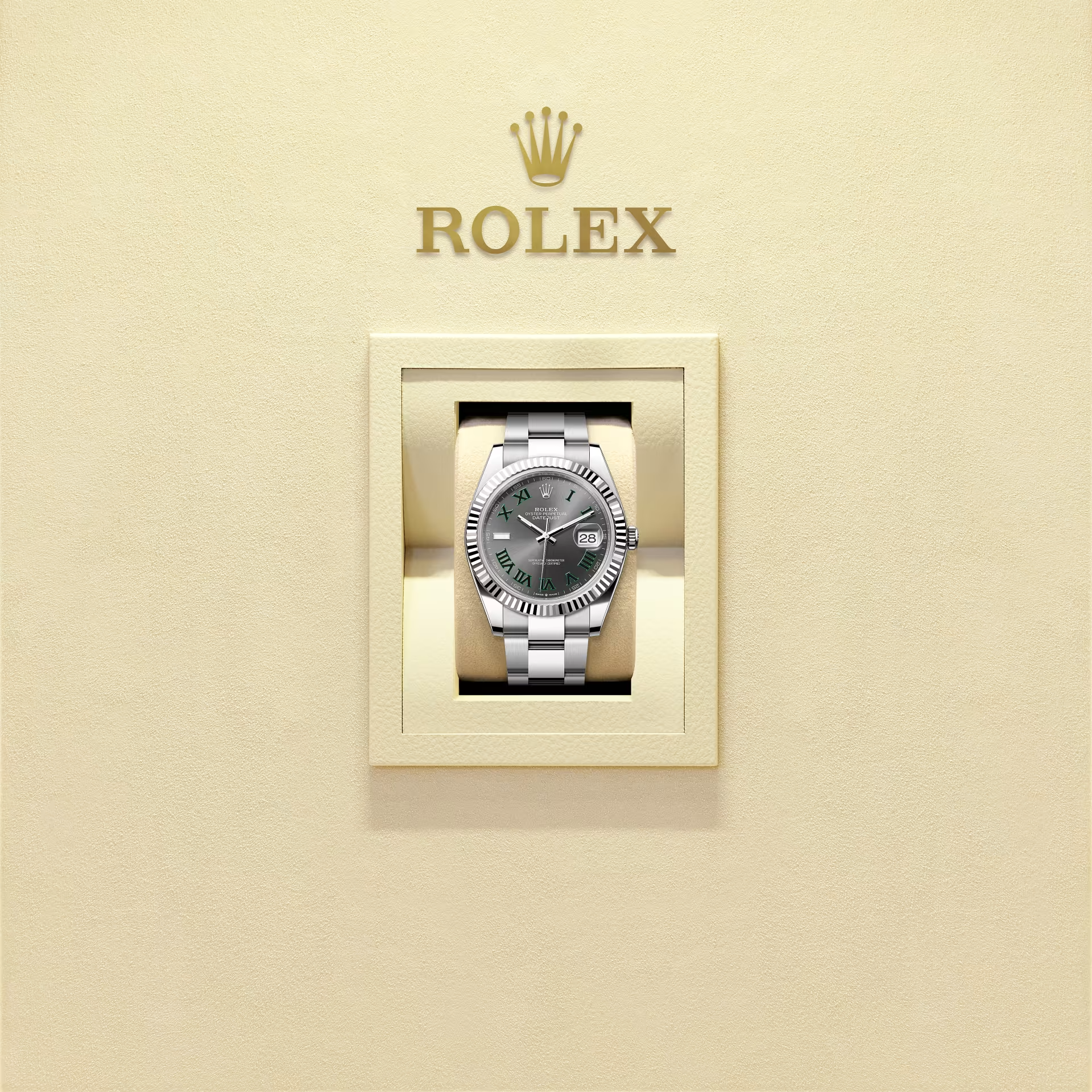 ينعكس الضوء بالتساوي على طول النقوش، مما يخلق توهجًا خفيًا مميزًا يتحرك وفقًا لموضع المعصم. بمجرد الانتهاء من التشطيب الشمسي، يتم صياغة لون المينا باستخدام تقنية الترسيب الفيزيائي للبخار (PVD) أو بتقنية الطلاء المعدني الكهربائي. وبعدها، يعمد خبير رولكس إلى وضع طبقة خفيفة من طلاء الورنيش التي تضفي على المينا مظهره النهائي.