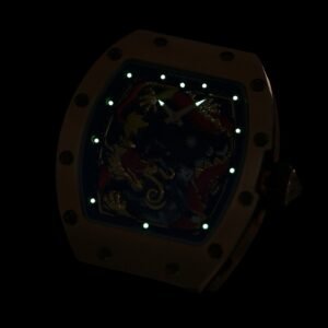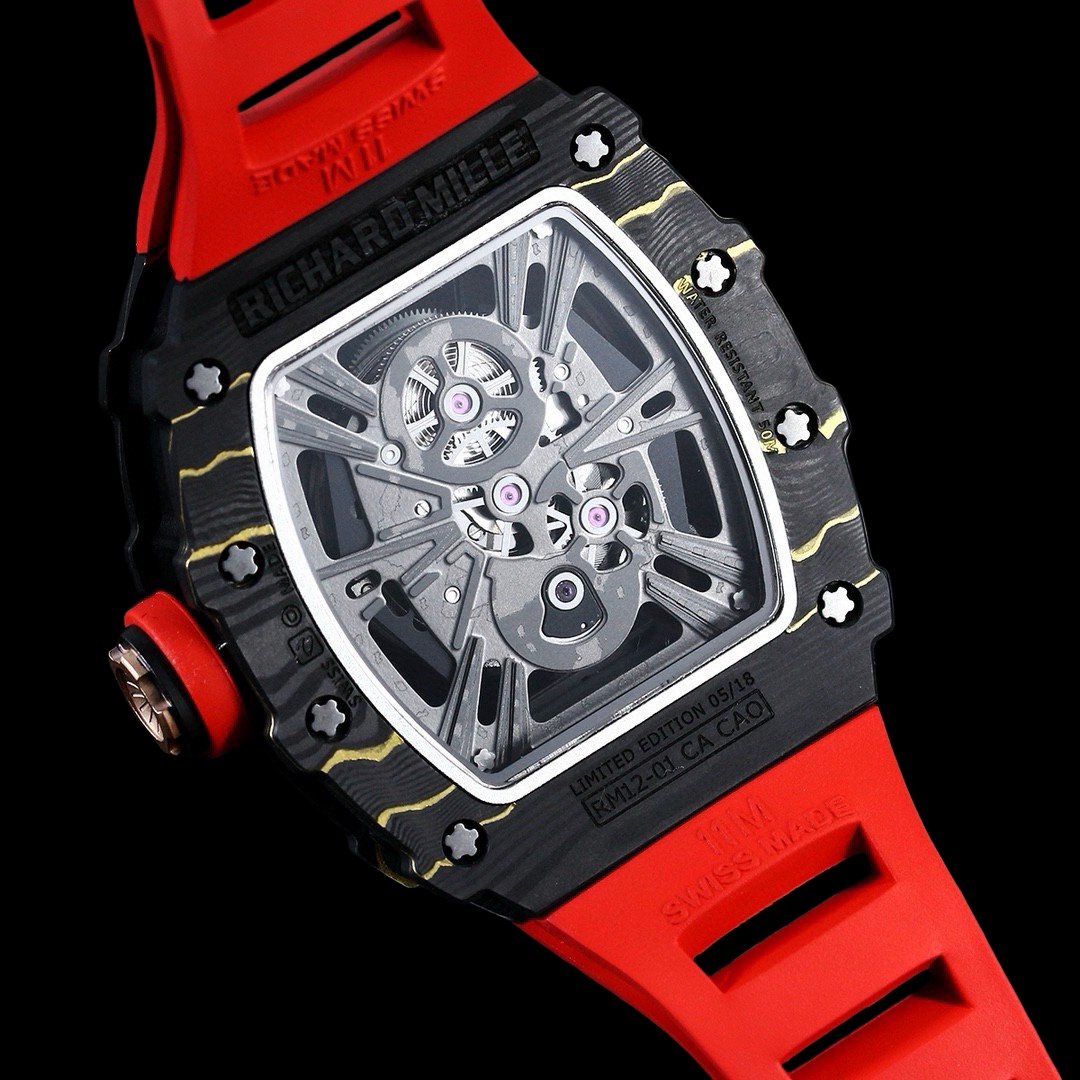 ساعة الحذافة المدمجة RM12-01 مصنوعة من ألياف الكربون ومواد هيكل ألياف الكوارتز، وهي متوفرة بثلاثة ألوان: ألياف الكربون الأسود النقي، ألياف الكربون الذهبية + ألياف الكوارتز البيضاء. باستخدام مرآة الياقوت، كل نمط له مزاياه الخاصة وله دائمًا ميزاته الخاصة الجذابة. الحجم 45×15 ملم
