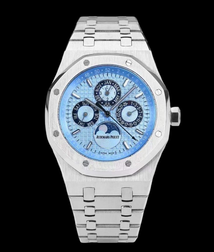 ساعات AP Audemars Piguet Royal Oak متعددة الوظائف 26574 و26606 مجهزة بحركة Cal.5134 الأصلية، وعلبة من الفولاذ المقاوم للصدأ 316L، 41 ملم. جميع الوظائف مثل التقويم ويوم الأسبوع والشهر ومرحلة القمر وما إلى ذلك كلها وظائف حقيقية ويمكن استخدامها بشكل طبيعي. (حزام فولاذي اختياري، شريط، حزام)