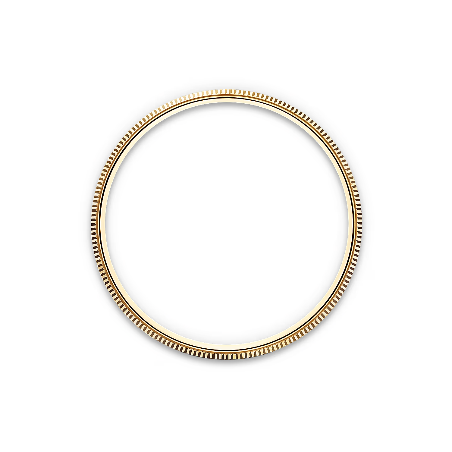 تتميّز هذه الساعة الأنيقة والرصينة بعلبة رقيقة متوّجة بإطار مقبّب جزئيًا ومخدّد بدقة، حيث يتميّز الجزء السفلي بتخديد أنيق والجزء العلوي مقبب.
